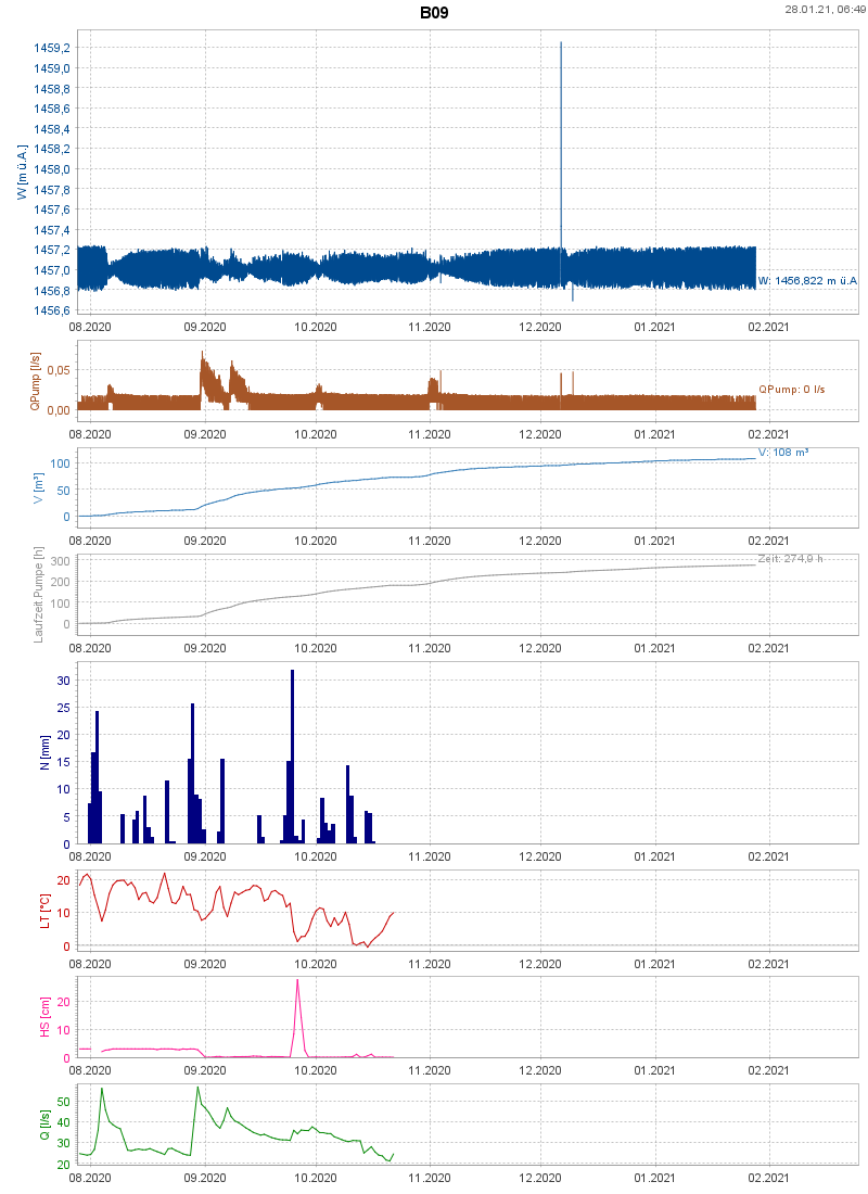 Grundwasserpumpen Wasserstände und Summen in Kombination mit Niederschlag: